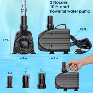 Ultra Quiet Submersible Pump with Dry Burning Protection 11ft High Lift for Pond, Fountains, Waterfall, Hydroponics, Aquariums KF208