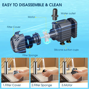Longevity - Built-in filtration system and dry burning protection to prevent the water pump from being damaged during use
