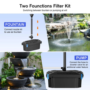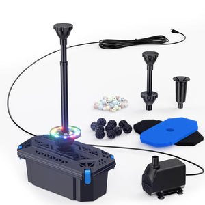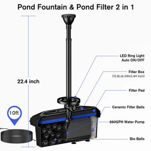 NFESOLAR 660GPH Pond Filter Fountain Kit with LED Light & Multi-Layer Filtration