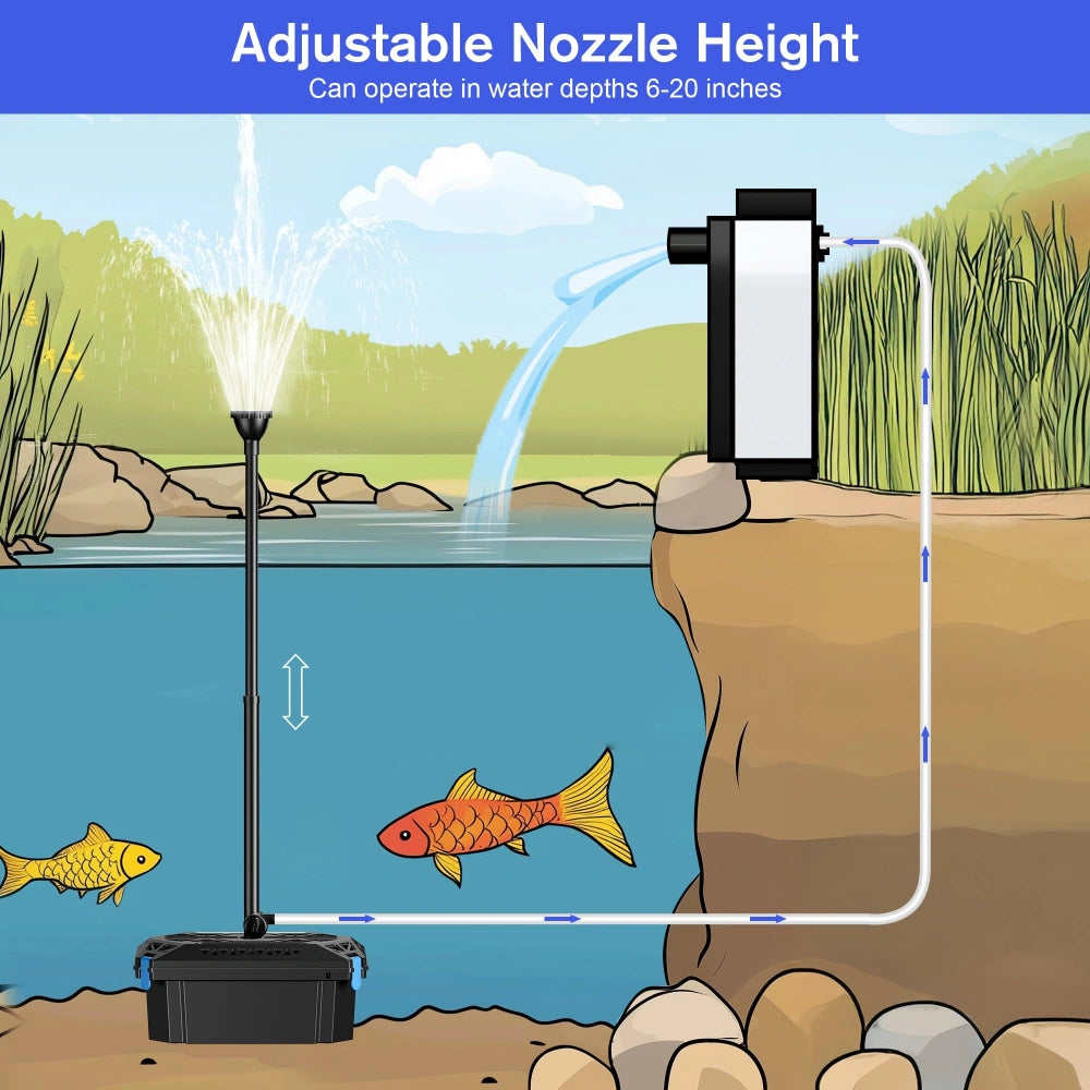 Transform your outdoor pond with NFESOLAR’s 660GPH filter fountain kit—featuring LED lights, multi-layer filtration, and a powerful built-in pump. Create a clean, beautiful water feature that works day and night.