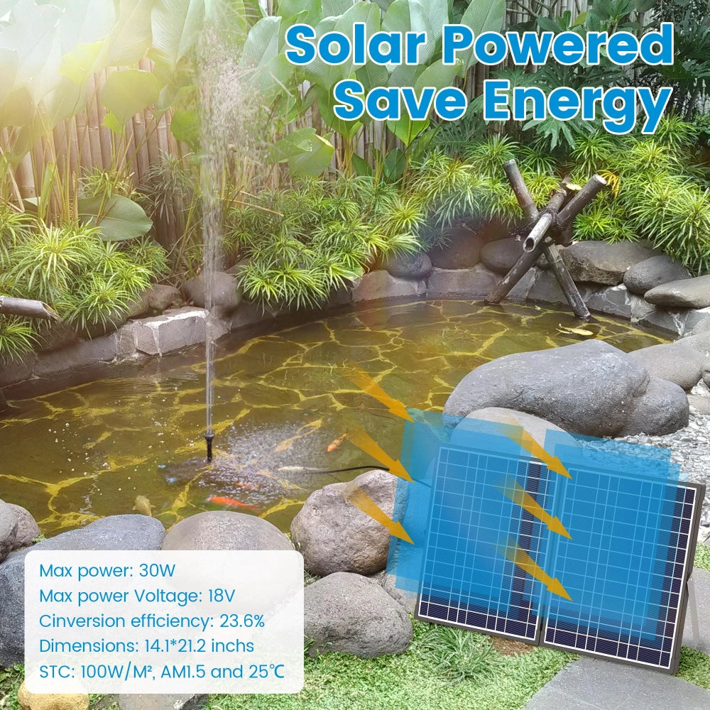 - Multiple Functions: Set it up in your fish pond, and you will get a filtration and oxygenation system, as well as a beautiful pond fountain. You can also use it as a solar submersible pump with a powerful filtration system to provide clean, clear water for your water feature