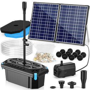 - Complete Pond Kit with Peace of Mind Warranty: The Pond fliter pump kit comes with everything you need, including a 35W high-efficiency solar panel, submersible pump, filter box with filter media, and fountain heads. Plus, enjoy a 1-year warranty for added peace of mind. If you ever have any questions, our customer support team is here to help